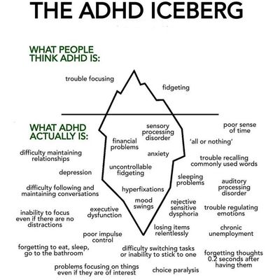 With nice tidbits and aids on the internet one can get a good start in creating good interventions for the ADHD member(s) of your family. It is important understand the ADHD person struggles. ADHD does not end with inattention and impulsivity. The illustration on this page demonstrates the ADHD mind is much more susceptible to depression, anxiety, and other forms of psychological struggles.